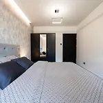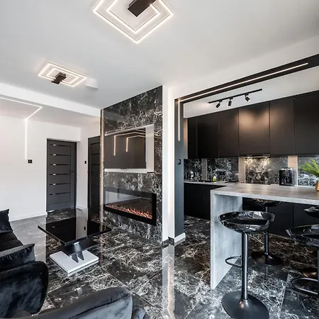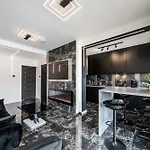 Black Luxury Apartment cuenta con un balcón y un vestidor y está equipado con un sofá, y comodidades como climatizador. El establecimiento también incluye comodidades multimedia como TV por cable con películas a la carta, que permiten a los huéspedes relajarse a su antojo. Este apartamento dispone de 2 dormitorios con almohadas de plumón hipoalergénicas. El alojamiento tiene 1 baño con una ducha adaptada y un inodoro separado. Además, encontrarás secador de pelo y toallas de baño.